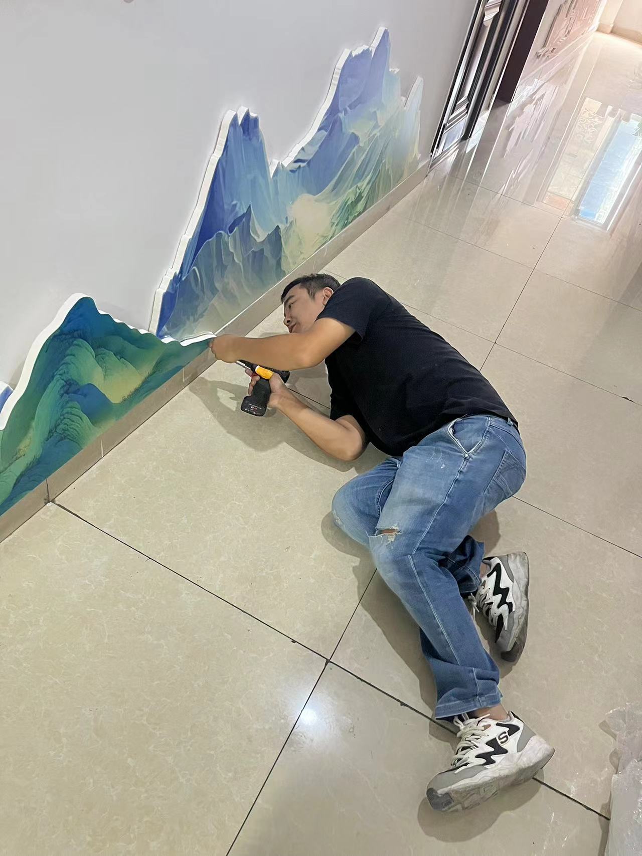 然而,挑战并未结束。中秋节前夕,正当人们沉浸在节日的喜悦中时,安装团队(邓强、熊道富、周继平)、业务对接人员(袁赛、王勇钧)五人,毅然放弃休假,选择在中秋假期的第二天出发,踏上了安装网点形象墙的征途。他们克服重重困难,连续两天,从日出到深夜,不辞辛劳地完成了10多面墙的安装工作。每一面墙,都承载着他们的汗水与智慧,也见证了他们对客户承诺的坚守。