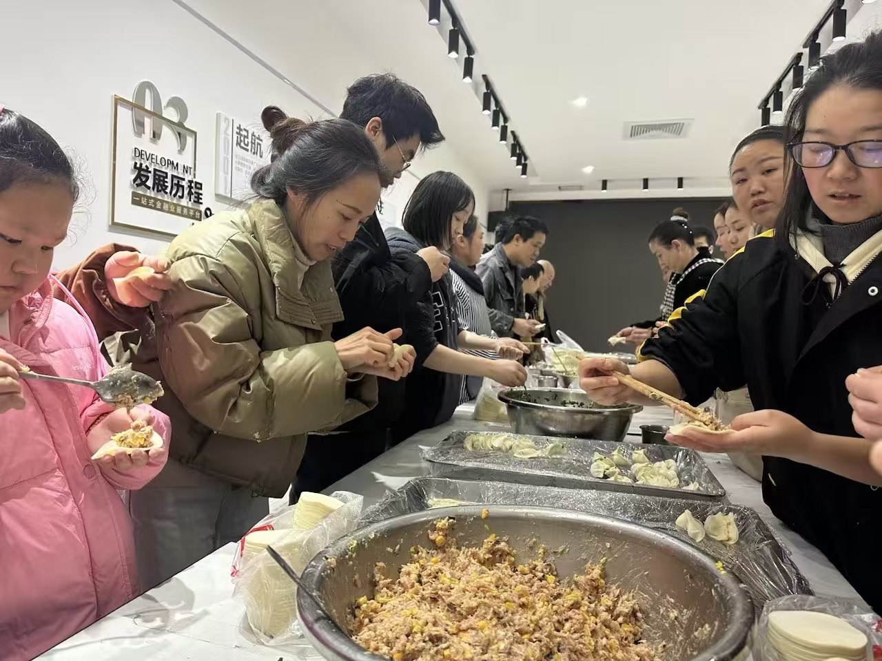 在这场别开生面的饺子盛宴中,没有了职位的界限与高低之分,唯有彼此间真挚的关怀与默契的协作。新员工与老员工,管理层与普通职员,大家其乐融融地围坐一堂,互相传授着包饺子的心得与技巧,同时分享着生活中的点滴趣事与温馨瞬间。这份跨越身份与职位的融洽与和谐,不仅让整个厂区洋溢着如家庭般的温馨与亲密,更成为了每个人心中难以忘怀的美好记忆,让这个冬日因团结与爱而温暖如春。